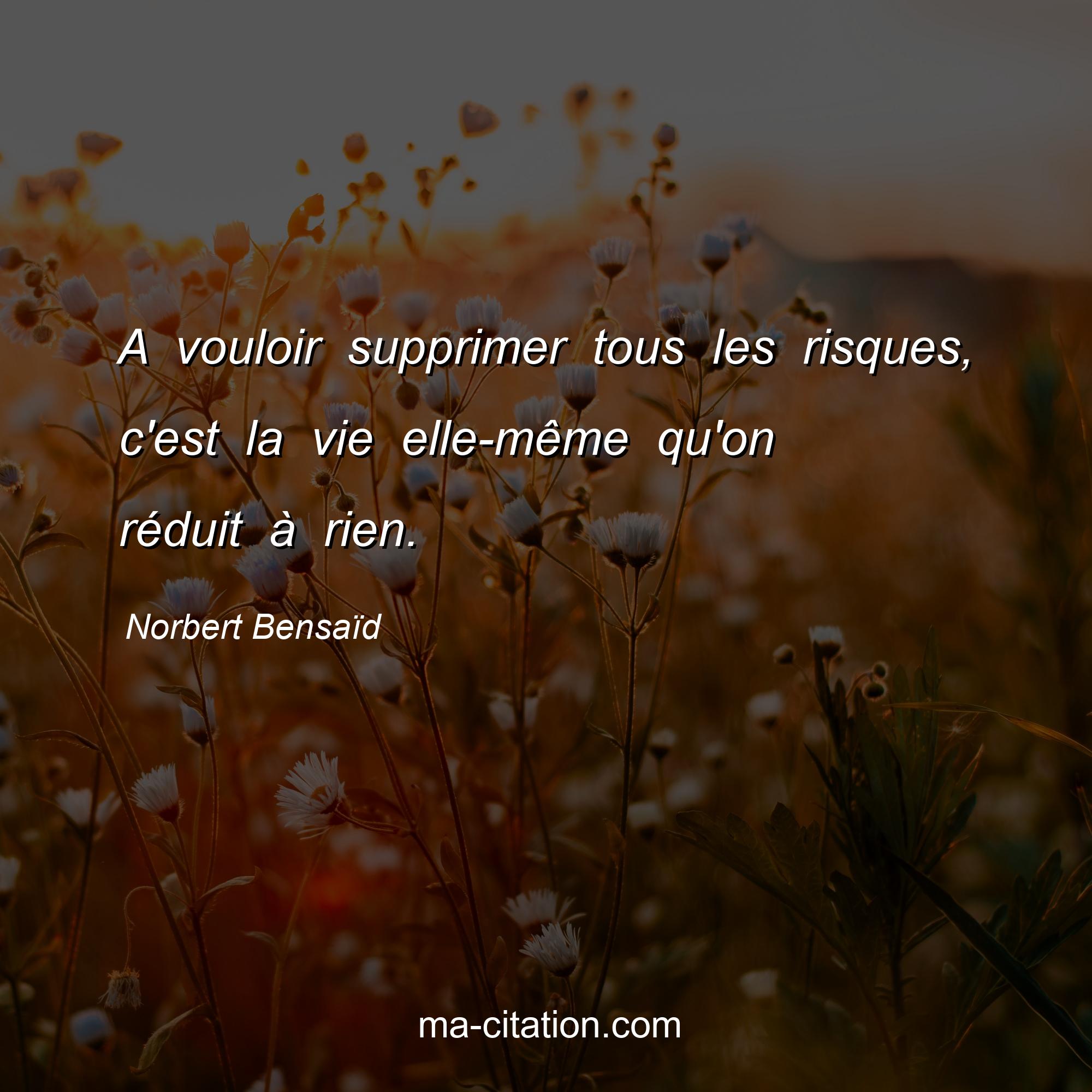 Norbert Bensaïd est l'auteur de la citation sur la vie "A vouloir supprimer tous les risques, c'est la vie elle-même qu'on réduit à rien.".