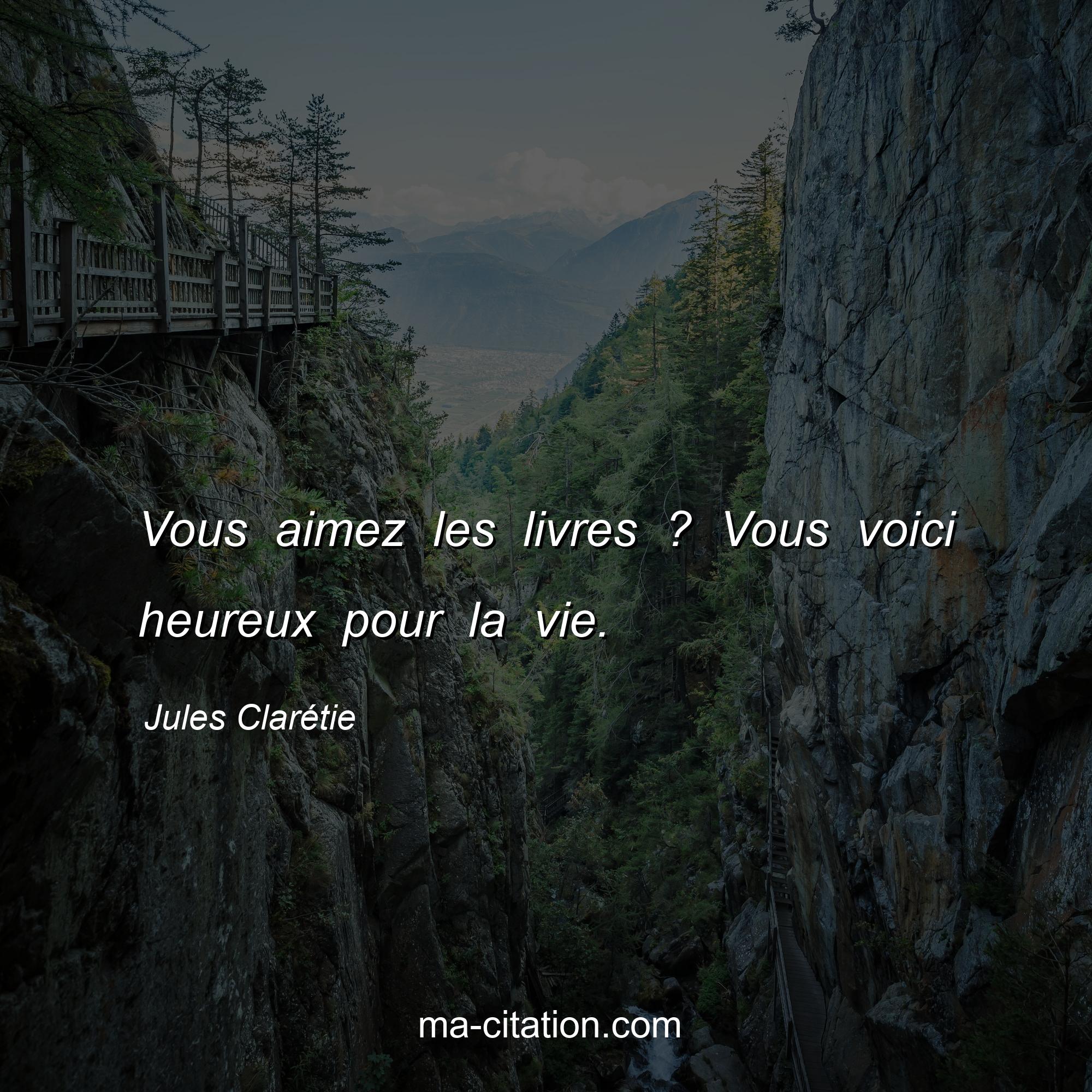 Jules Clarétie est l'auteur de la citation sur la vie "Vous aimez les livres ? Vous voici heureux pour la vie.".