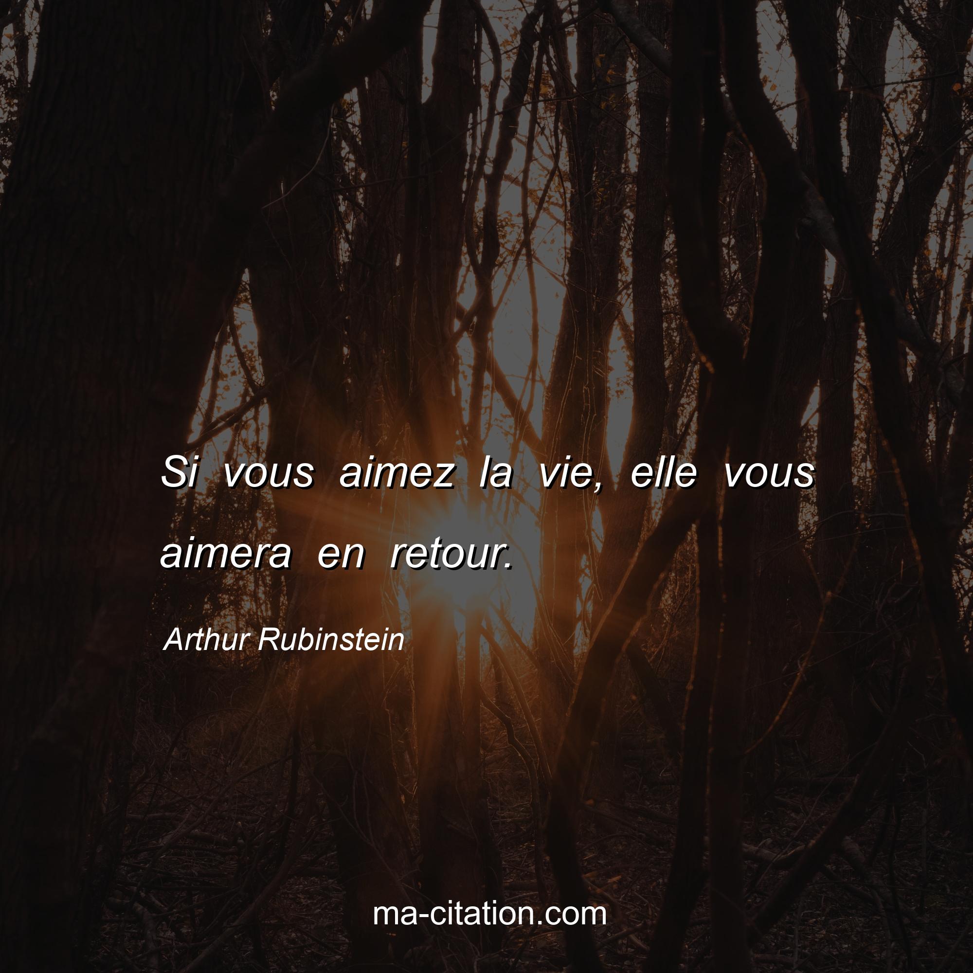 Arthur Rubinstein est l'auteur de la citation sur la vie "Si vous aimez la vie, elle vous aimera en retour.".
