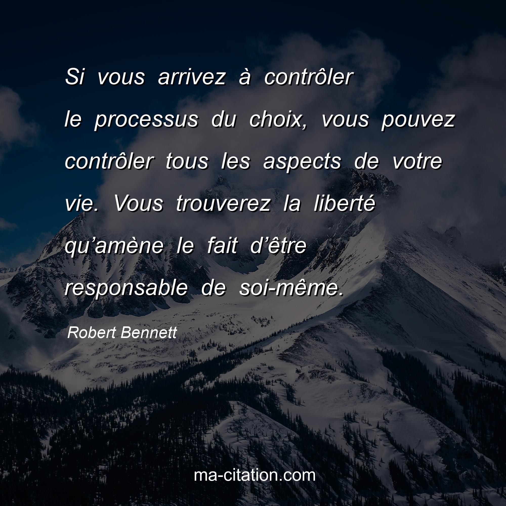 Citation sur la vie de Robert Bennett :Si vous arrivez à contrôler le processus du choix, vous pouvez contrôler tous les aspects de votre vie. Vous trouverez la liberté qu’amène le fait d’être responsable de soi-même.