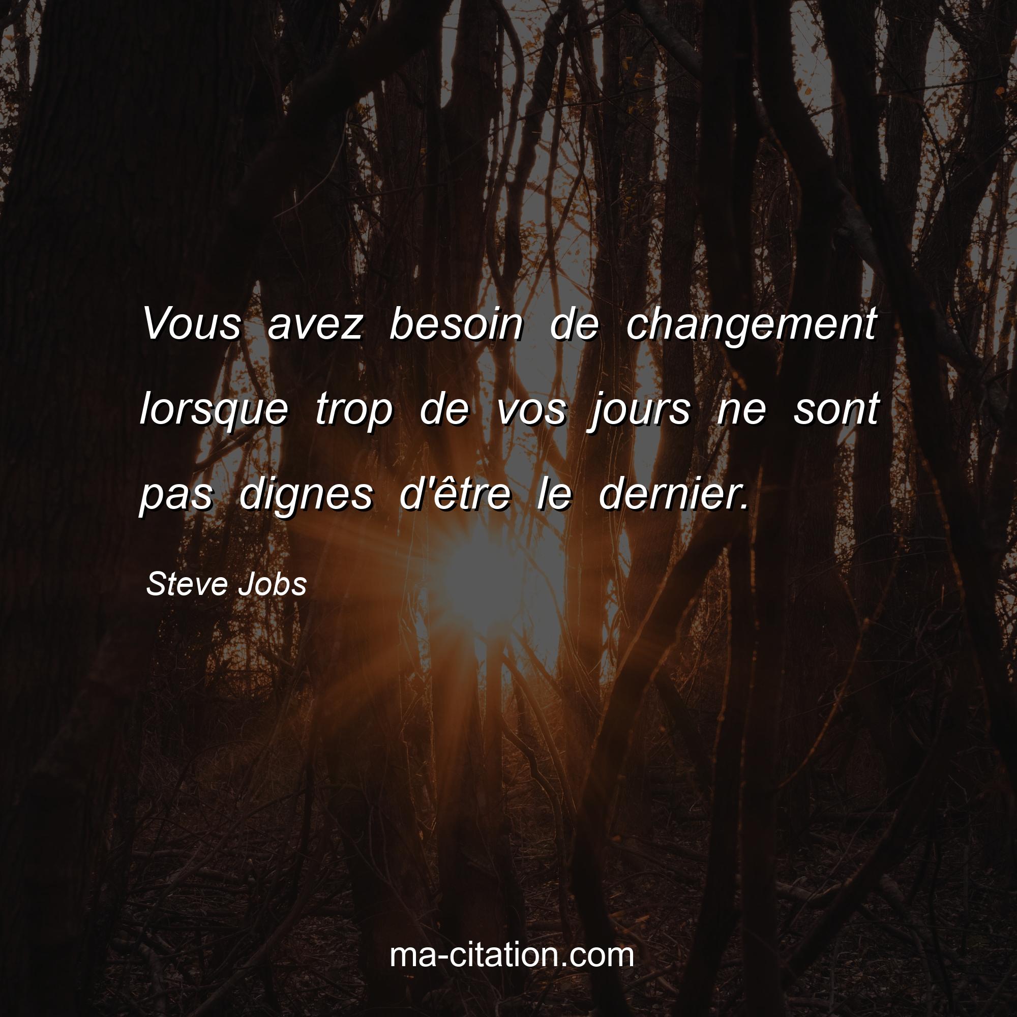 Citation sur la vie de Steve Jobs :Vous avez besoin de changement lorsque trop de vos jours ne sont pas dignes d'être le dernier.