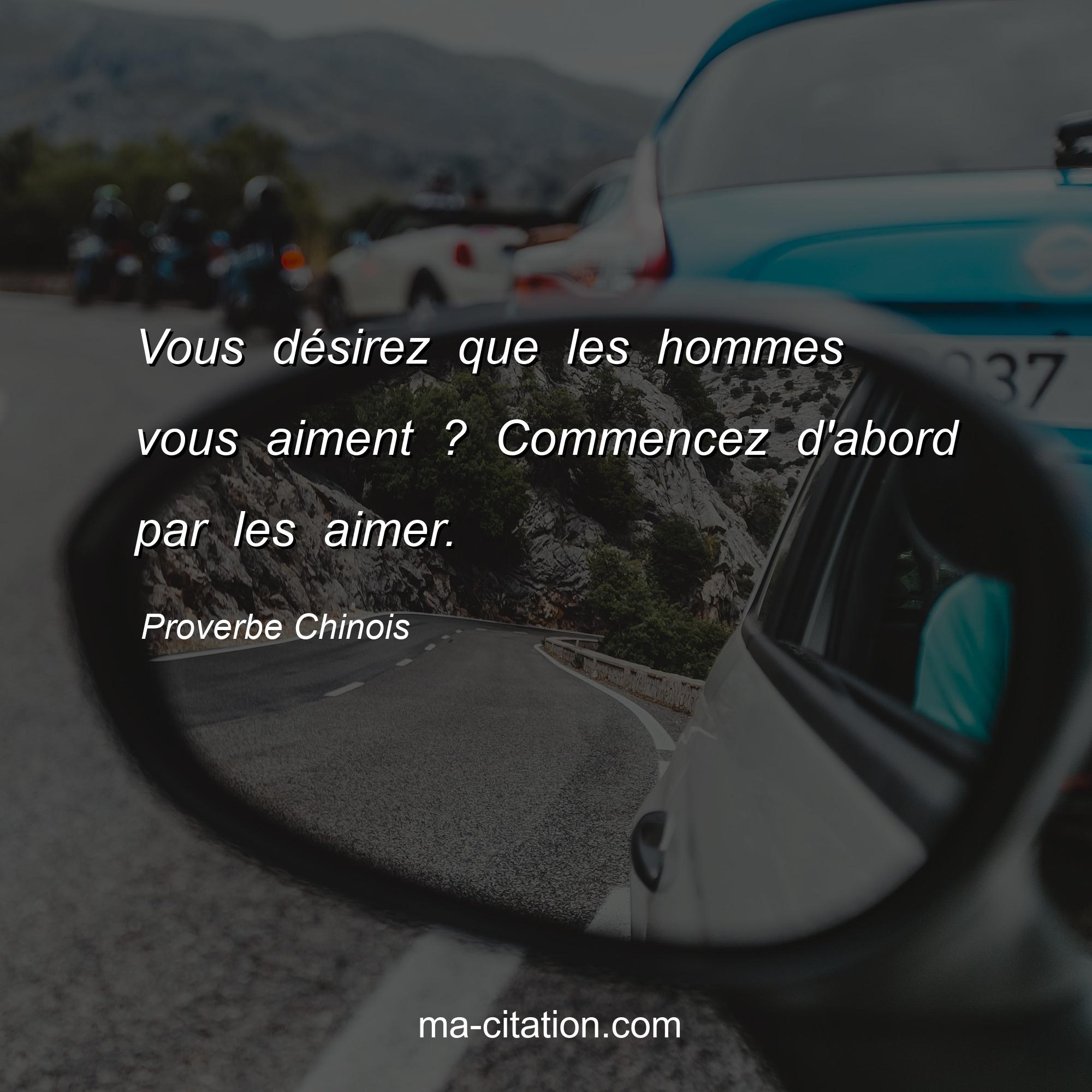 Proverbe Chinois sur la vie :Vous désirez que les hommes vous aiment ? Commencez d'abord par les aimer.