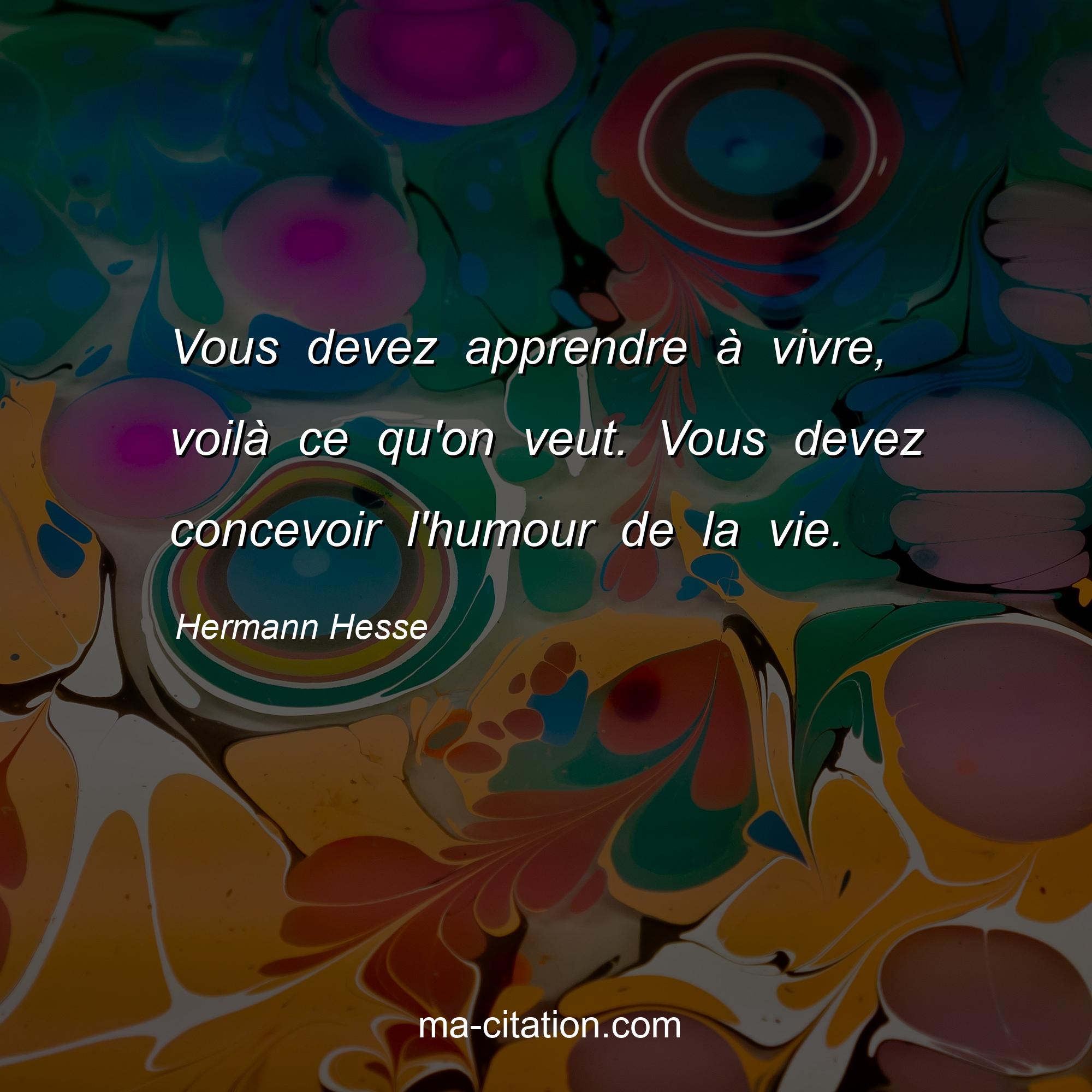 Citation sur la vie de Hermann Hesse :Vous devez apprendre à vivre, voilà ce qu'on veut. Vous devez concevoir l'humour de la vie.