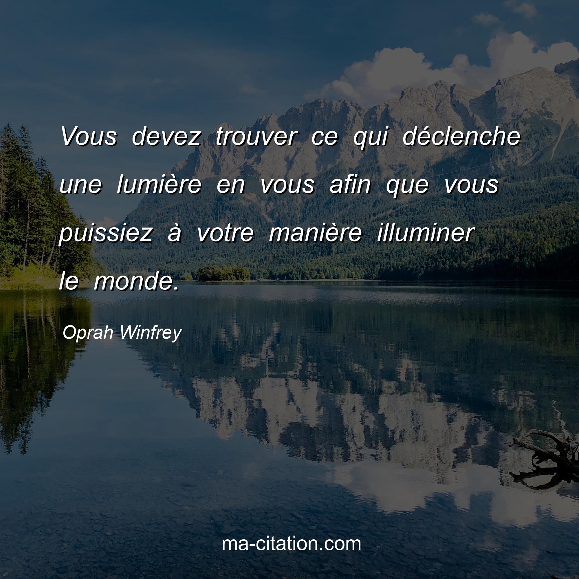Citation sur la vie d'Oprah Winfrey :Vous devez trouver ce qui déclenche une lumière en vous afin que vous puissiez à votre manière illuminer le monde.