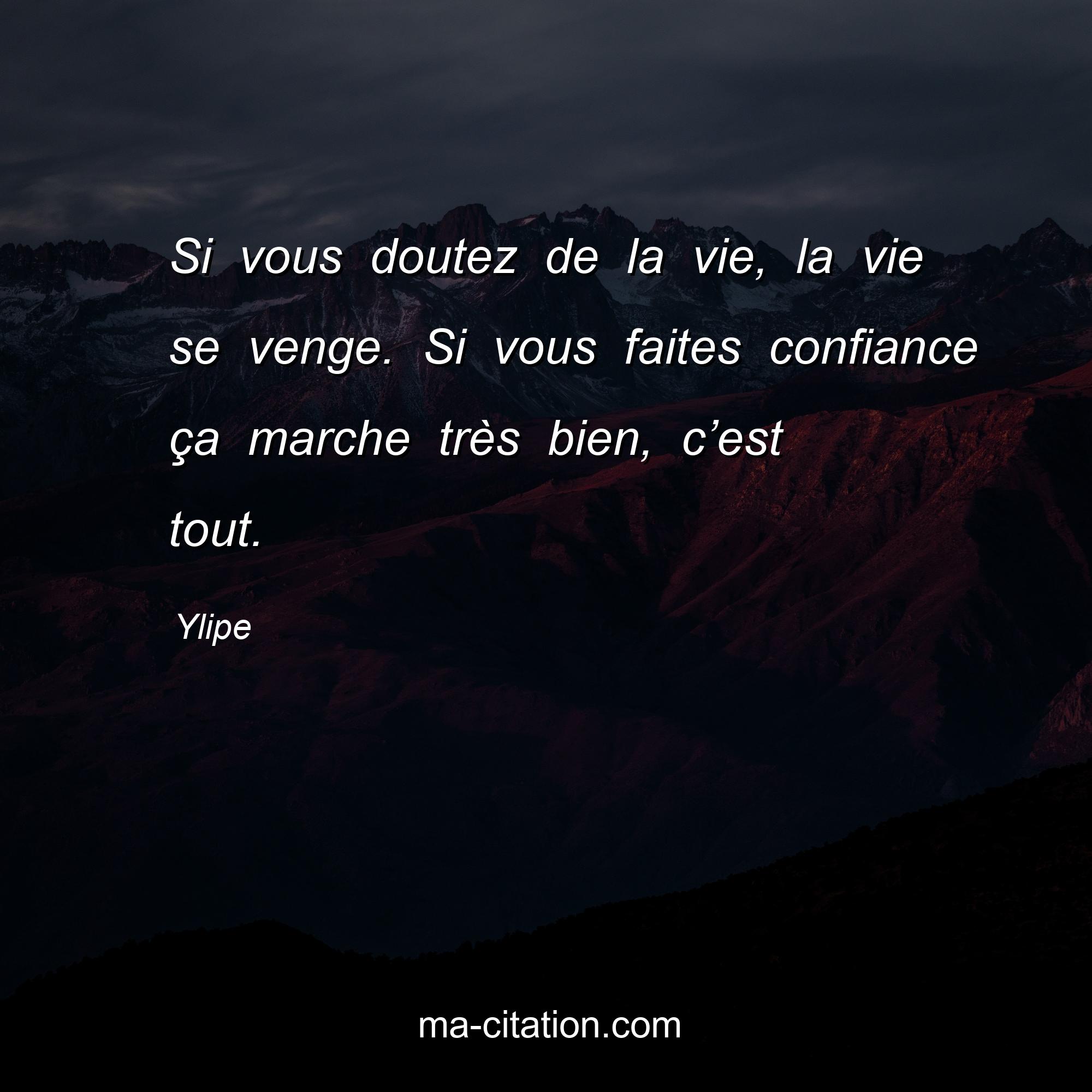 Citation sur la vie de Ylipe :Si vous doutez de la vie, la vie se venge. Si vous faites confiance ça marche très bien, c’est tout.