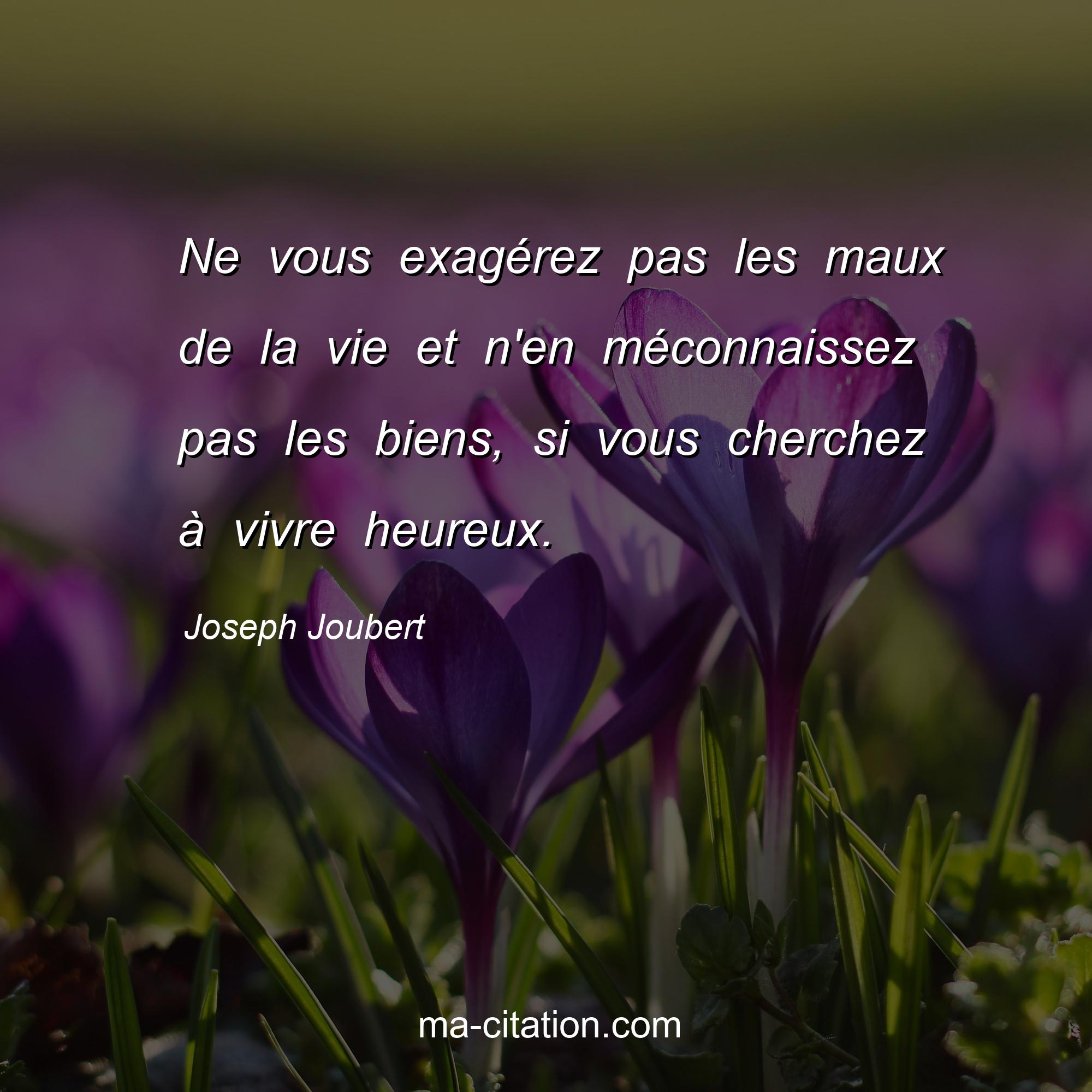 Citation sur la vie de Joseph Joubert :Ne vous exagérez pas les maux de la vie et n'en méconnaissez pas les biens, si vous cherchez à vivre heureux.