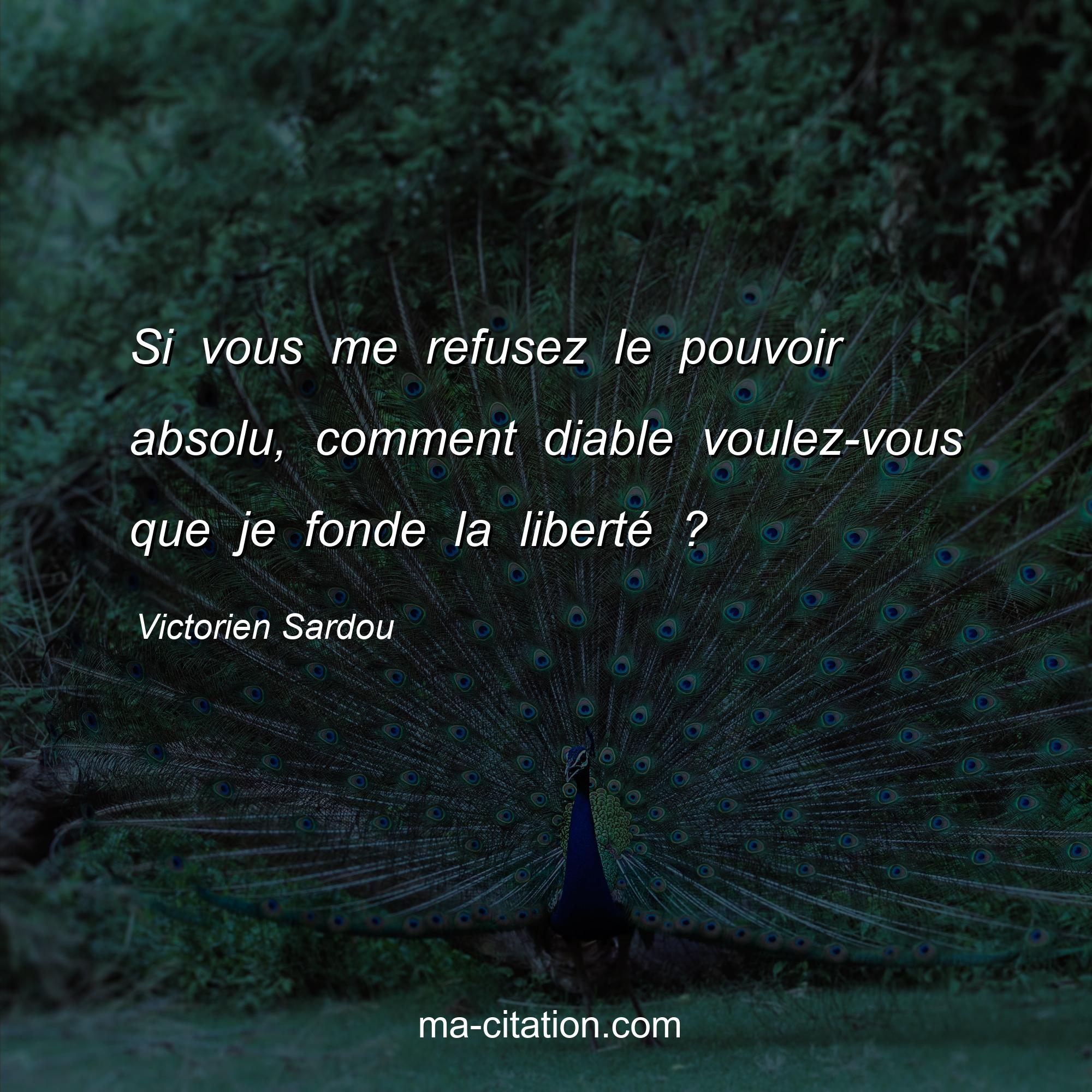 Victorien Sardou est l'auteur de la citation sur la vie "Si vous me refusez le pouvoir absolu, comment diable voulez-vous que je fonde la liberté ?".