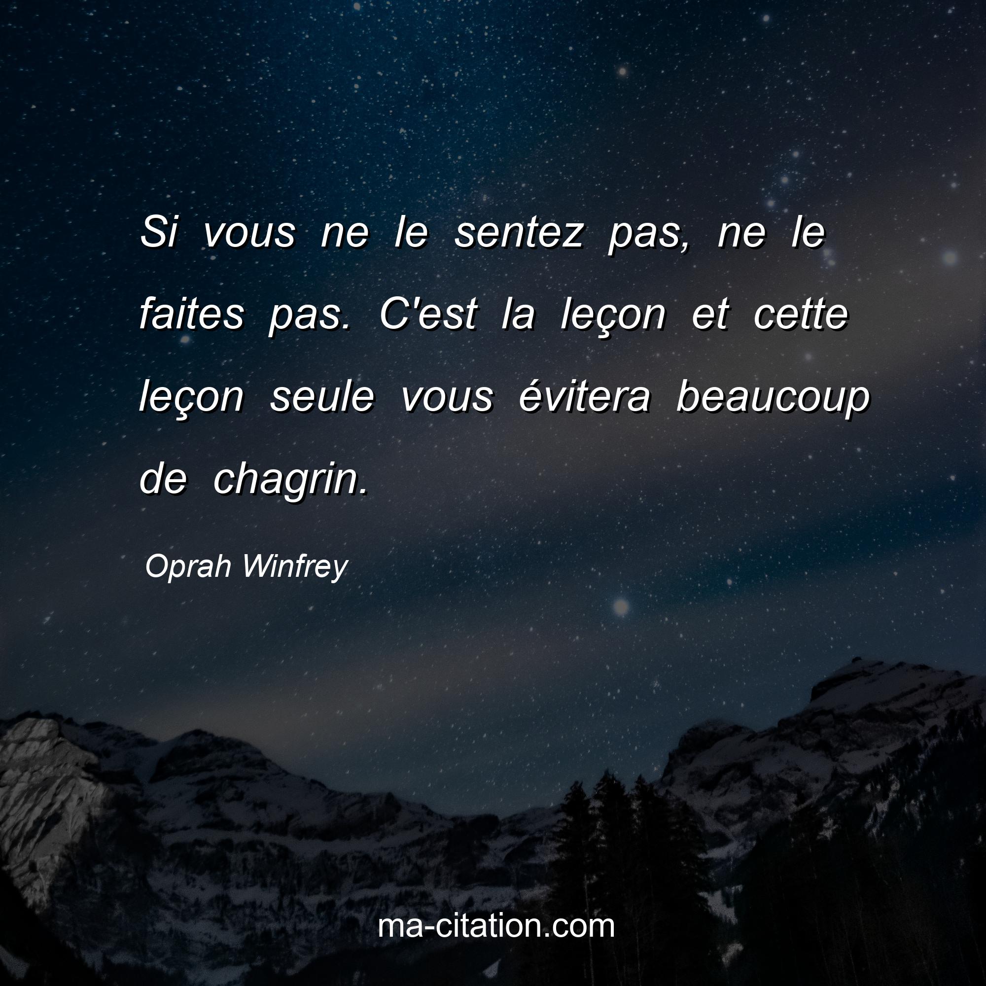 Citation sur la vie d'Oprah Winfrey :Si vous ne le sentez pas, ne le faites pas. C'est la leçon et cette leçon seule vous évitera beaucoup de chagrin.