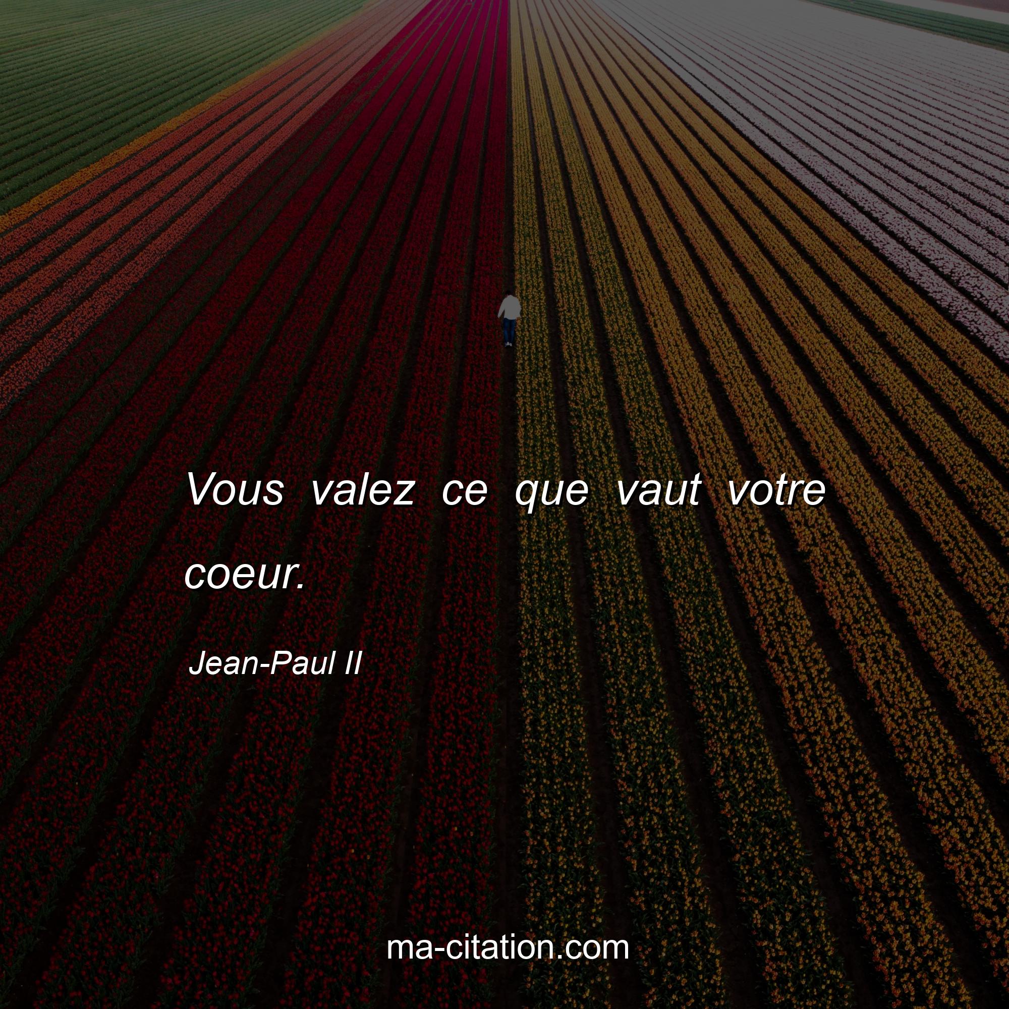Citation sur la vie de Jean-Paul II :Vous valez ce que vaut votre coeur.