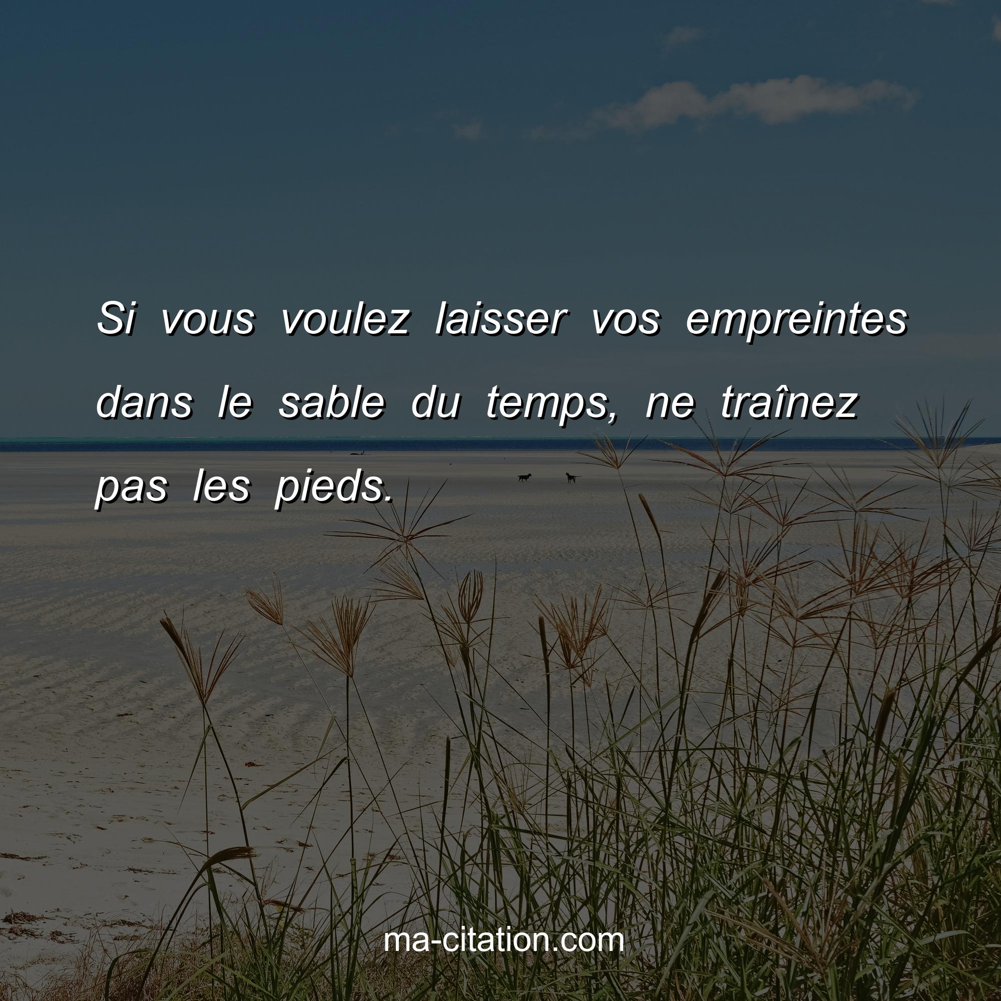 Citation sur la vie :Si vous voulez laisser vos empreintes dans le sable du temps, ne traînez pas les pieds.