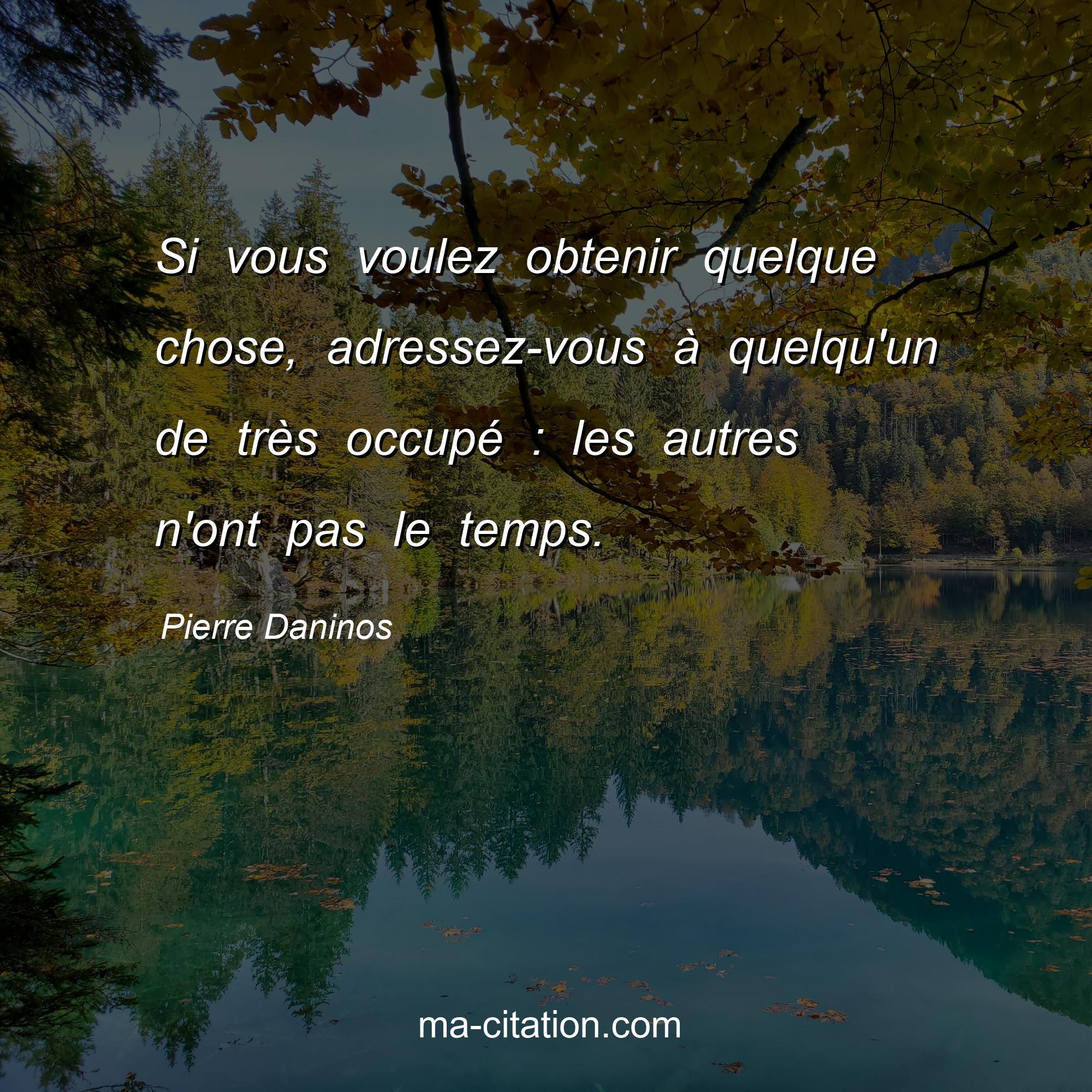 Citation sur la vie de Pierre Daninos :Si vous voulez obtenir quelque chose, adressez-vous à quelqu'un de très occupé : les autres n'ont pas le temps.