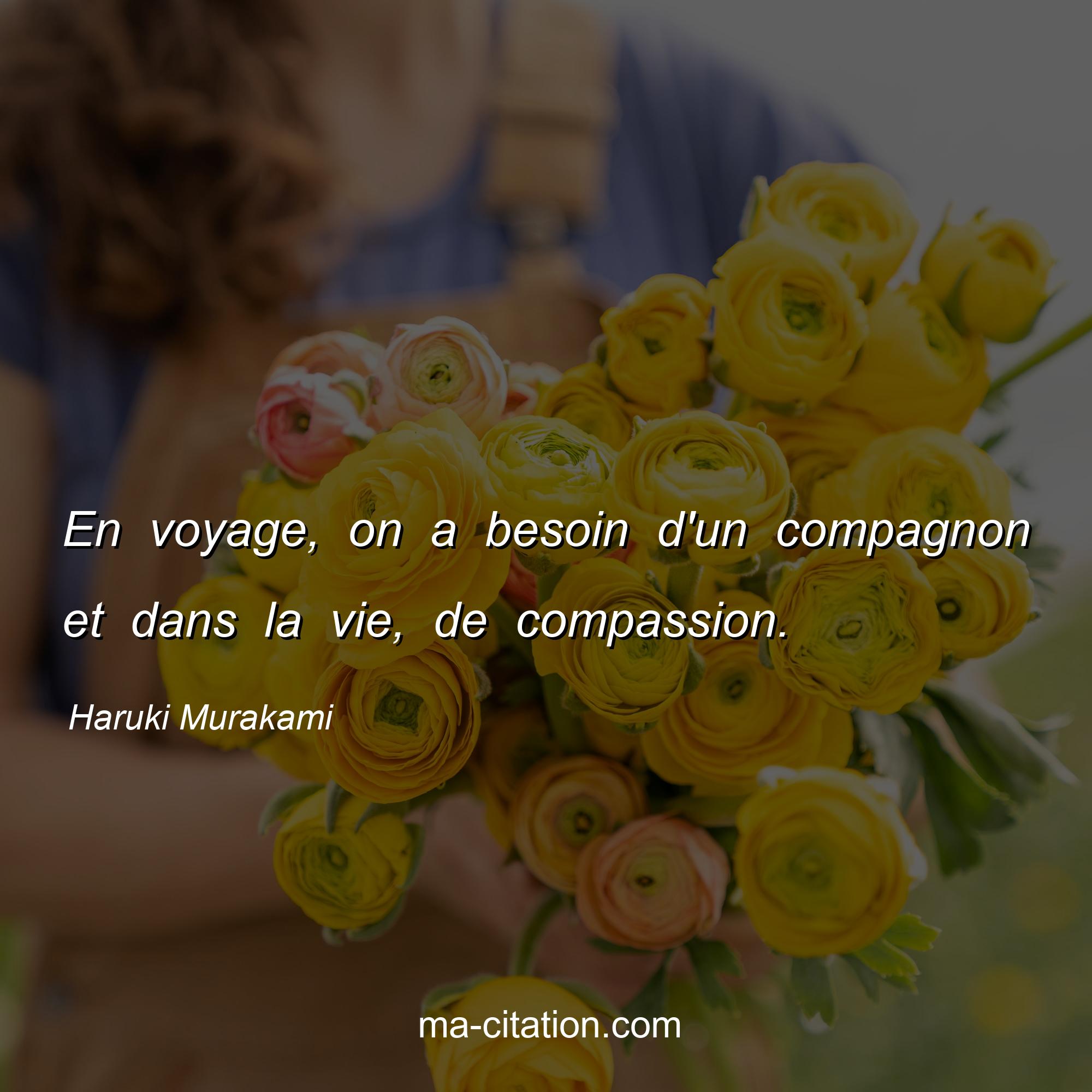 Citation sur la vie de Haruki Murakami :En voyage, on a besoin d'un compagnon et dans la vie, de compassion.