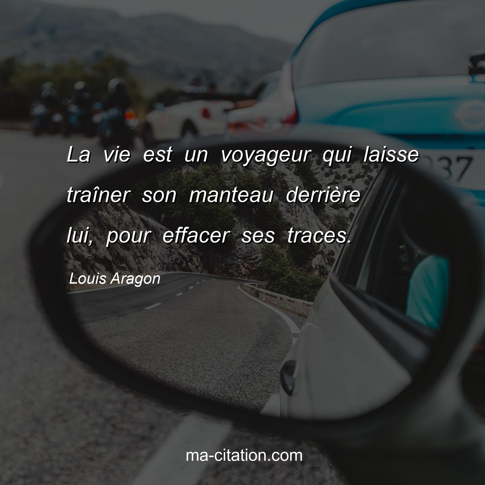 Louis Aragon est l'auteur de la citation sur la vie "La vie est un voyageur qui laisse traîner son manteau derrière lui, pour effacer ses traces.".