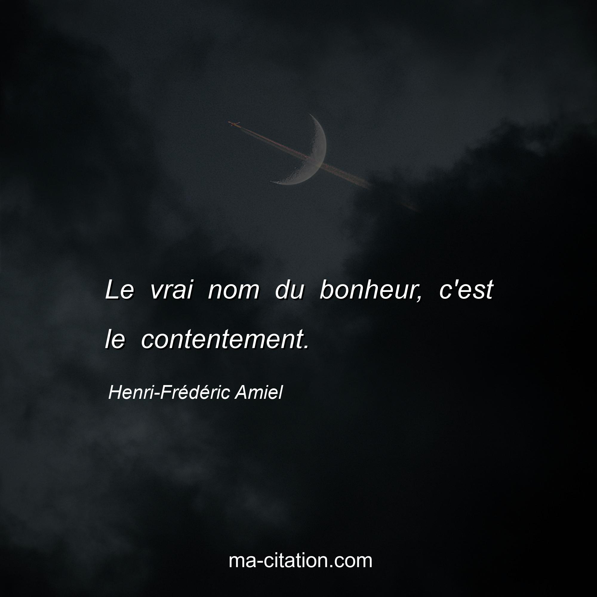 Citation sur la vie de Henri-Frédéric Amiel :Le vrai nom du bonheur, c'est le contentement.