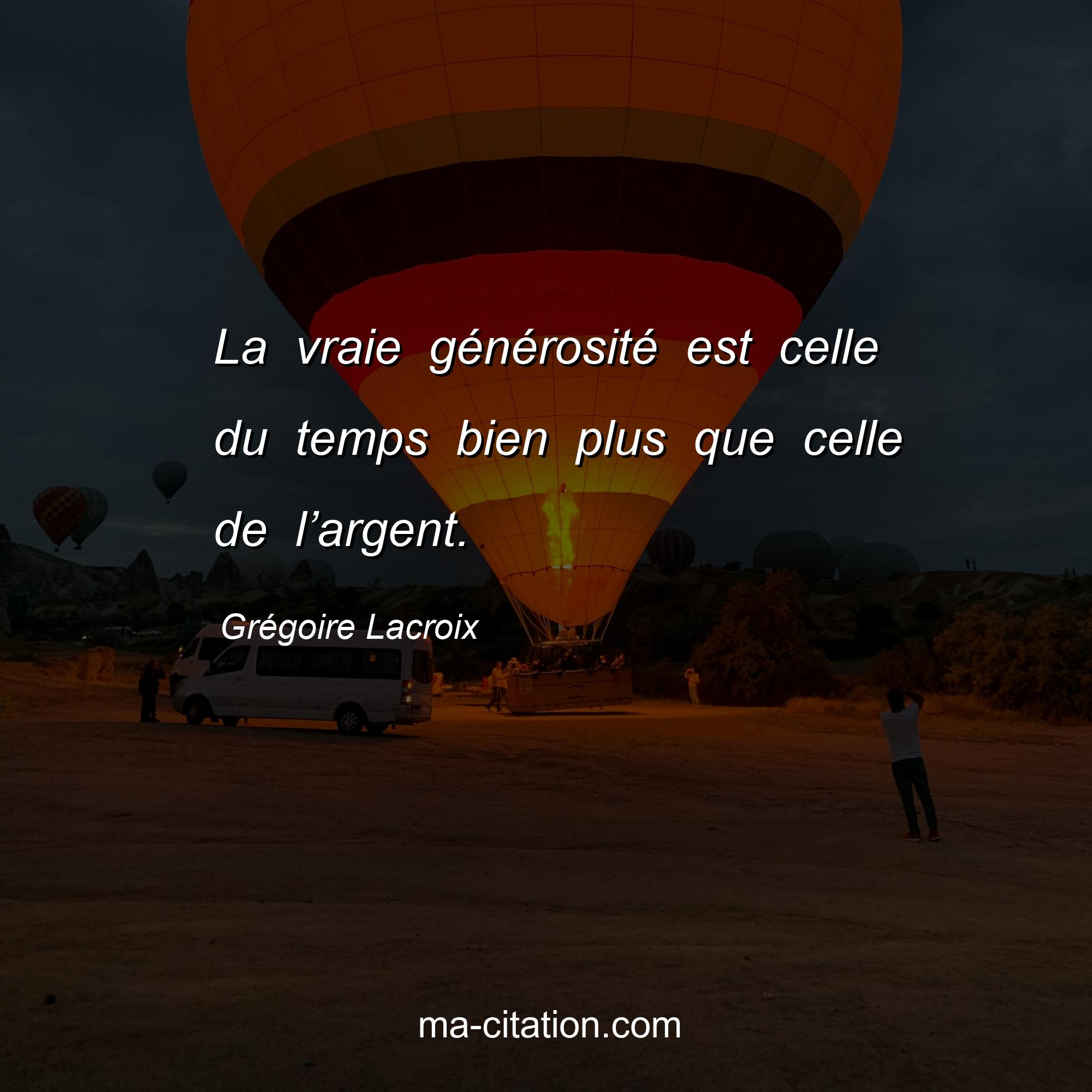Grégoire Lacroix est l'auteur de la citation sur la vie "La vraie générosité est celle du temps bien plus que celle de l’argent.".