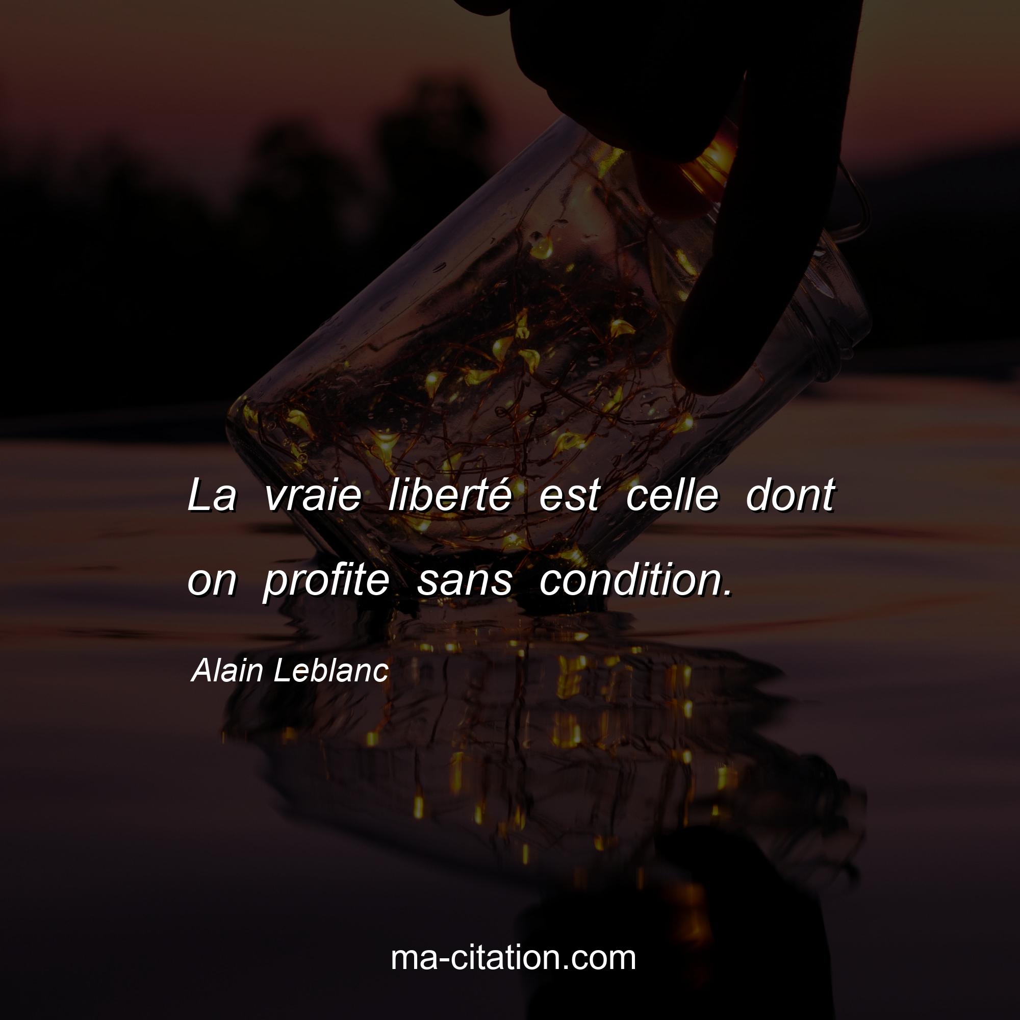Alain Leblanc est l'auteur de la citation sur la vie "La vraie liberté est celle dont on profite sans condition.".