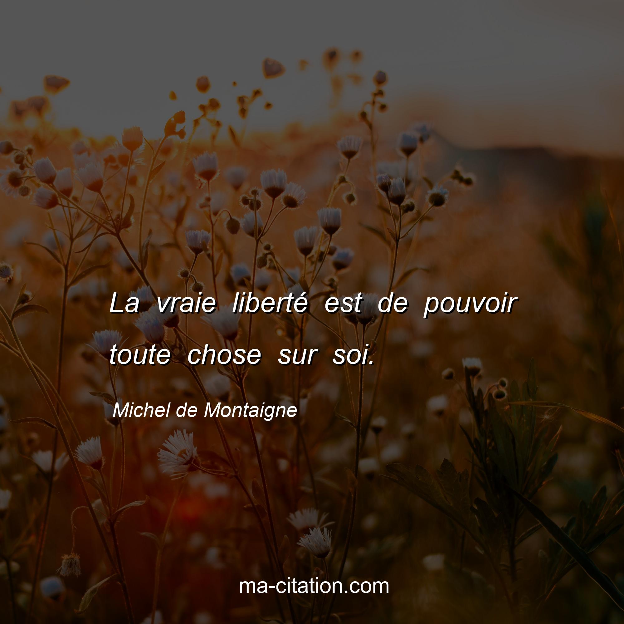 Citation sur la vie de Michel de Montaigne :La vraie liberté est de pouvoir toute chose sur soi.