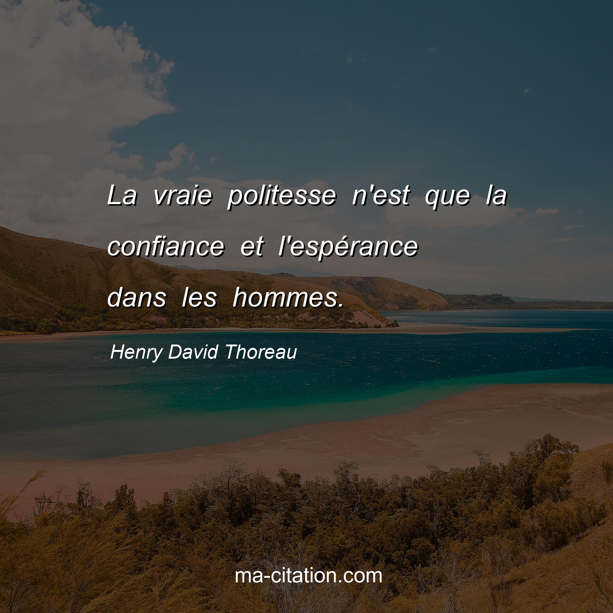 Citation sur la vie de Henry David Thoreau :La vraie politesse n'est que la confiance et l'espérance dans les hommes.