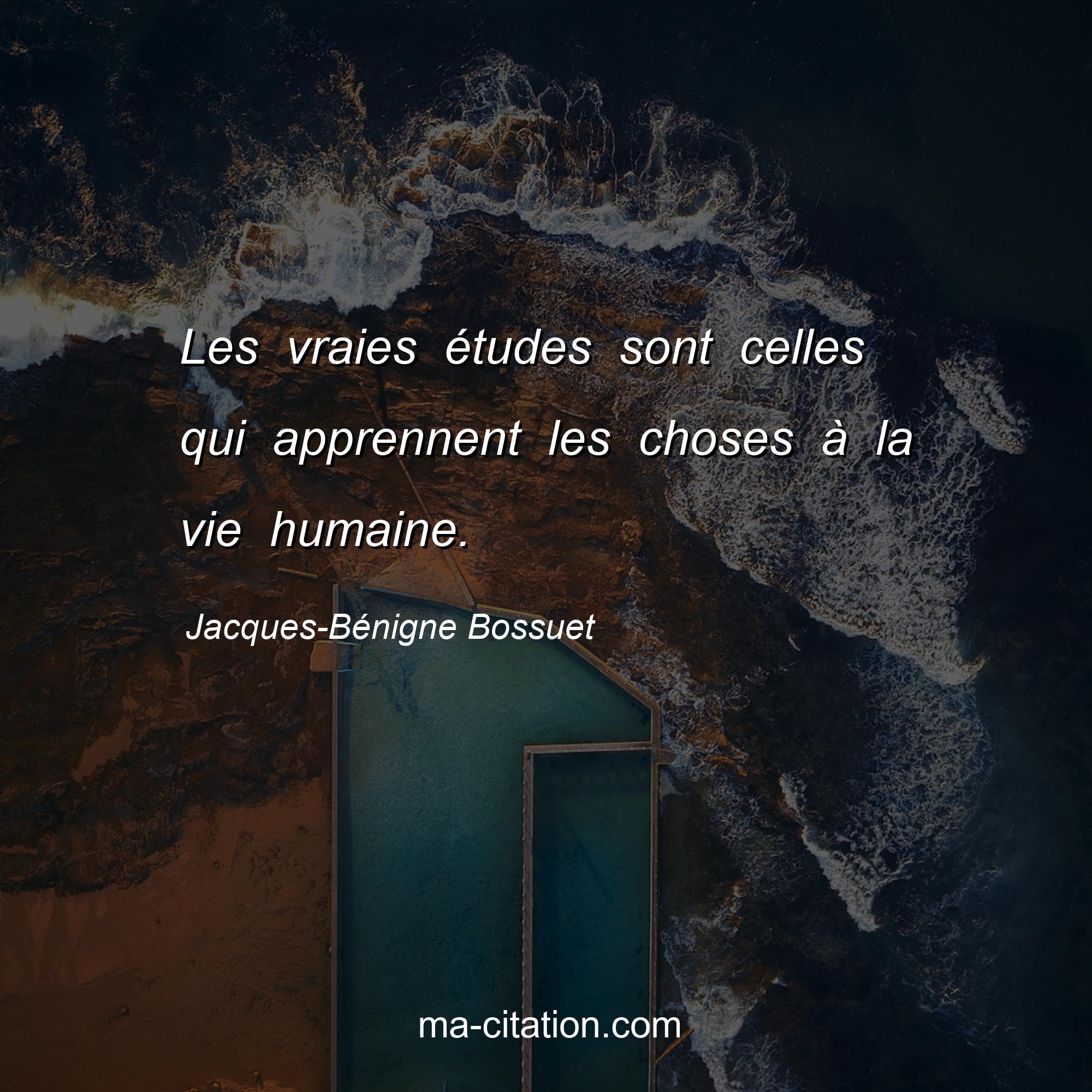 Citation sur la vie de Jacques-Bénigne Bossuet :Les vraies études sont celles qui apprennent les choses à la vie humaine.