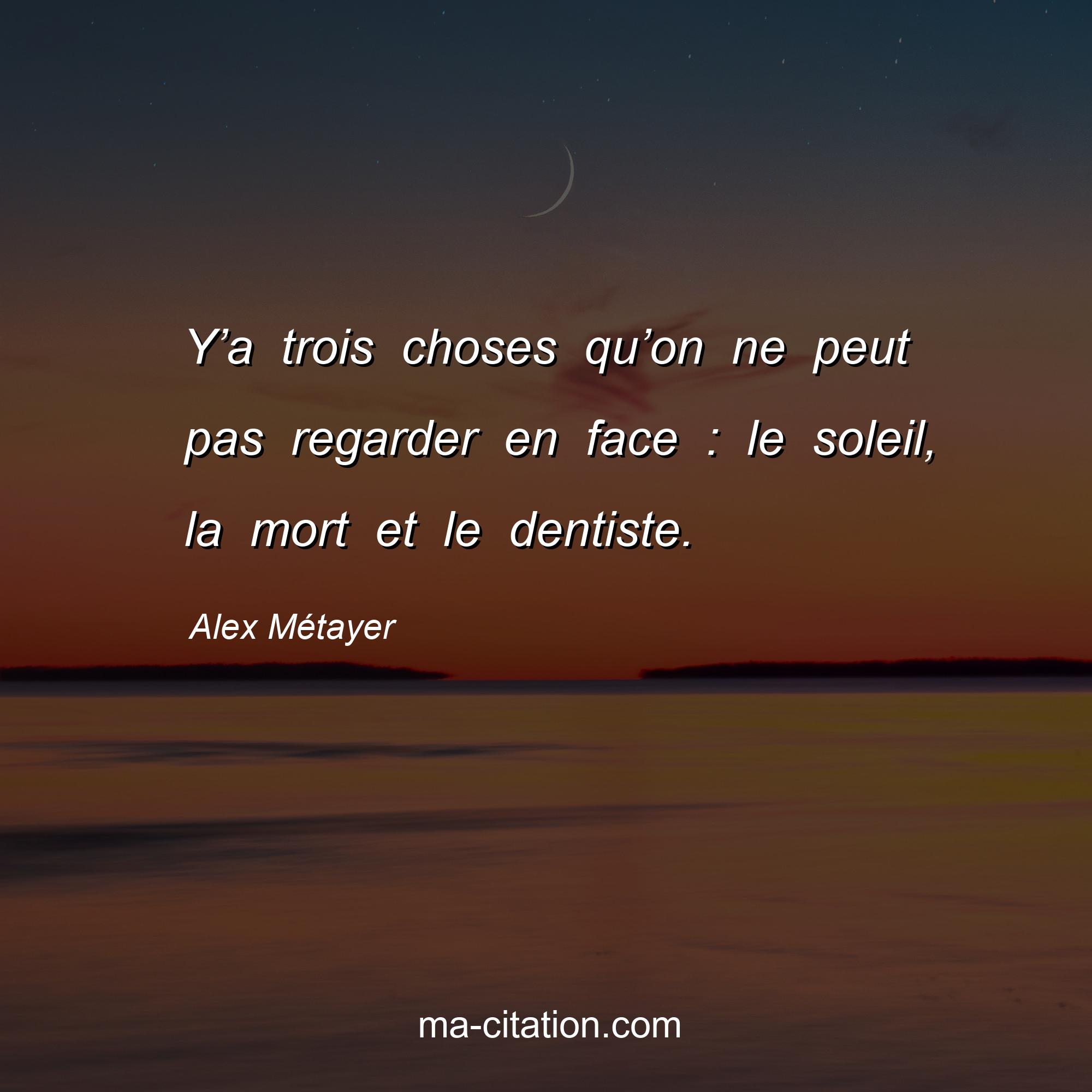 Citation sur la vie d'Alex Métayer :Y’a trois choses qu’on ne peut pas regarder en face : le soleil, la mort et le dentiste.