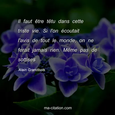 Il faut être têtu dans cette triste vie. Si l'on écoutait l'avis de tout le monde, on ne ferait jamais rien. Même pas de sottises
