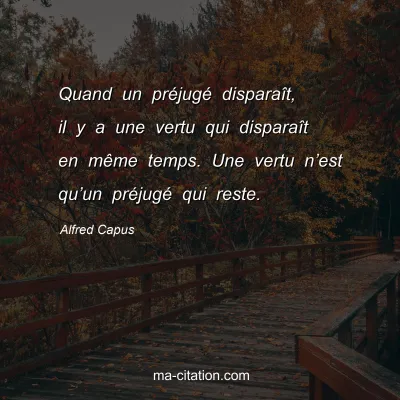 Quand un préjugé disparaît, il y a une vertu qui disparaît en même temps. Une vertu n’est qu’un préjugé qui reste.