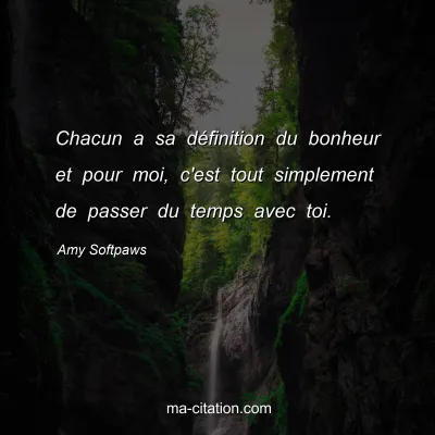 Chacun a sa définition du bonheur et pour moi, c'est tout simplement de passer du temps avec toi.