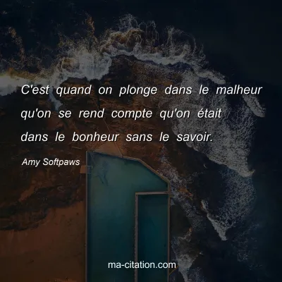 C'est quand on plonge dans le malheur qu'on se rend compte qu'on était dans le bonheur sans le savoir.