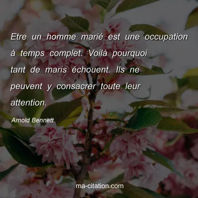Etre un homme marié est une occupation à temps complet. Voilà pourquoi tant de maris échouent. Ils ne peuvent y consacrer toute leur attention.