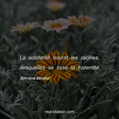 La solidarité nourrit les racines, desquelles se tisse la fraternité.