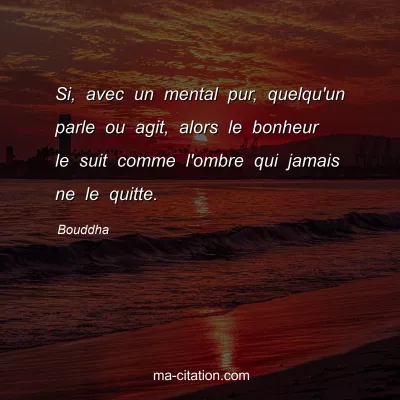 Si, avec un mental pur, quelqu'un parle ou agit, alors le bonheur le suit comme l'ombre qui jamais ne le quitte.