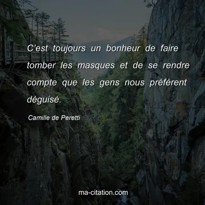 C’est toujours un bonheur de faire tomber les masques et de se rendre compte que les gens nous préfèrent déguisé.