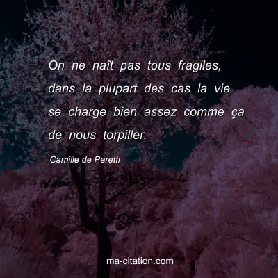 On ne naît pas tous fragiles, dans la plupart des cas la vie se charge bien assez comme ça de nous torpiller.