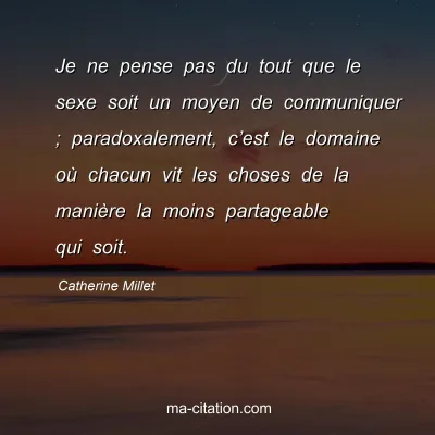 Je ne pense pas du tout que le sexe soit un moyen de communiquer ; paradoxalement, c’est le domaine où chacun vit les choses de la manière la moins partageable qui soit.