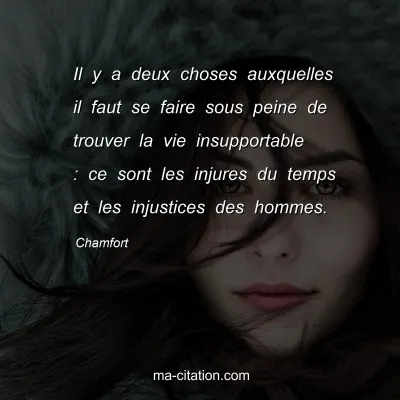 Il y a deux choses auxquelles il faut se faire sous peine de trouver la vie insupportable : ce sont les injures du temps et les injustices des hommes.