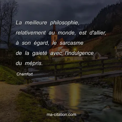 La meilleure philosophie, relativement au monde, est d'allier, à son égard, le sarcasme de la gaieté avec l'indulgence du mépris.