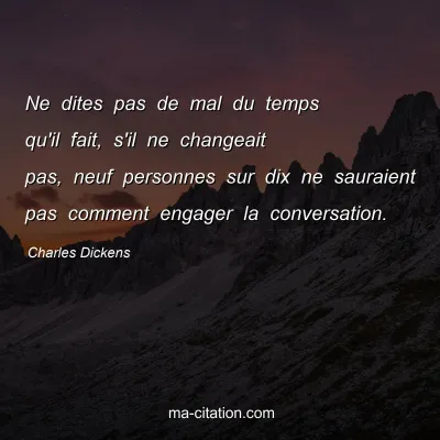 Ne dites pas de mal du temps qu'il fait, s'il ne changeait pas, neuf personnes sur dix ne sauraient pas comment engager la conversation.