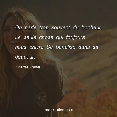 On parle trop souvent du bonheur. La seule chose qui toujours nous enivre Se banalise dans sa douceur.
