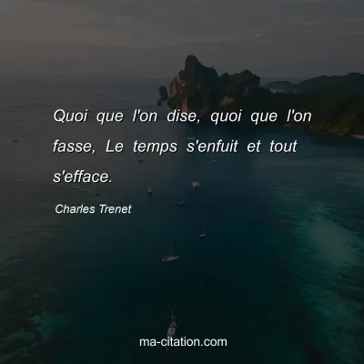 Quoi que l'on dise, quoi que l'on fasse, Le temps s'enfuit et tout s'efface.