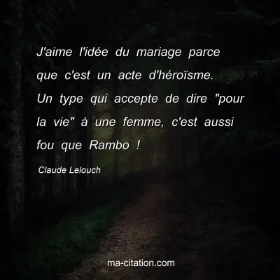 J'aime l'idée du mariage parce que c'est un acte d'héroïsme. Un type qui accepte de dire "pour la vie" à une femme, c'est aussi fou que Rambo !