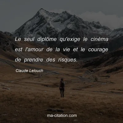 Le seul diplôme qu'exige le cinéma est l'amour de la vie et le courage de prendre des risques.