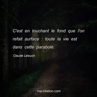C'est en touchant le fond que l'on refait surface : toute la vie est dans cette parabole.