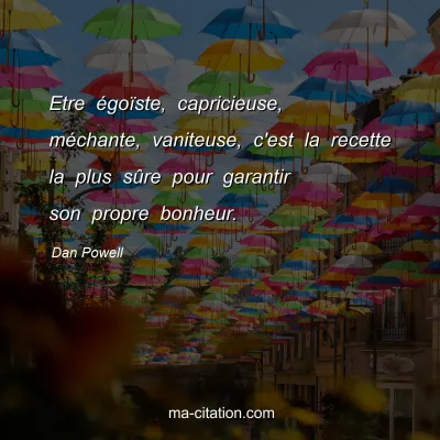 Etre égoïste, capricieuse, méchante, vaniteuse, c'est la recette la plus sûre pour garantir son propre bonheur.