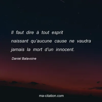 Il faut dire à tout esprit naissant qu’aucune cause ne vaudra jamais la mort d’un innocent.