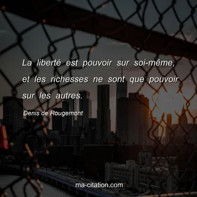 La liberté est pouvoir sur soi-même, et les richesses ne sont que pouvoir sur les autres.
