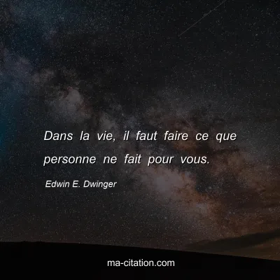 Dans la vie, il faut faire ce que personne ne fait pour vous.