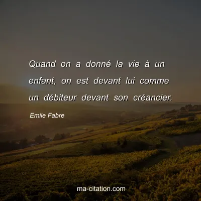 Quand on a donné la vie à un enfant, on est devant lui comme un débiteur devant son créancier.