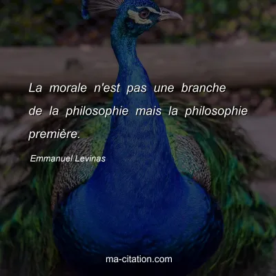 La morale n'est pas une branche de la philosophie mais la philosophie première.