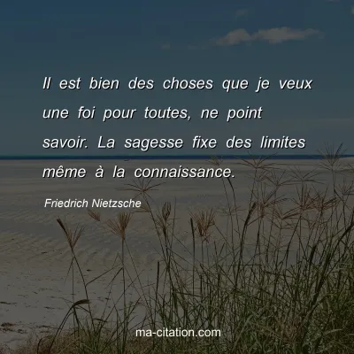 Nietzsche est un philosophe allemand du XIXème siècle. Poète et musicien à ses heures, il a surtout marqué l'histoire de la philosophie. Il a également enseigné la philologie à l'université de Bâle et a publié de nombreux ouvrages dont les plus connus sont : le Crépuscule des Idoles, le Gai Savoir, Ainsi parlait Zarathoustra… Il s'est attaqué au nihilisme sous-jacent, idéologie rejetant toute croyance ou refusant toute contrainte sociale, qu'il a décelé dans la religion ou la morale. Les dix dernières années de sa vie ont été marquées par des crises de démence qui ont entraîné une paralysie générale avant de mettre fin à sa vie.