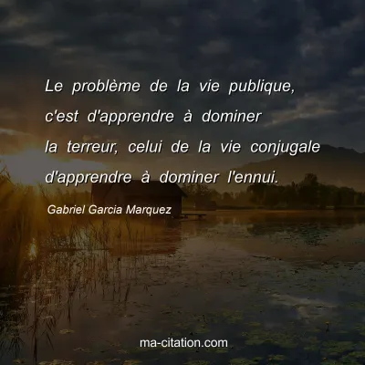 Le problème de la vie publique, c'est d'apprendre à dominer la terreur, celui de la vie conjugale d'apprendre à dominer l'ennui.